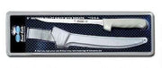 Dexter Russell's Sani-Safe Fillet Knife delivers precision and control for professional fish preparation. The extended, flexible blade glides smoothly along the backbone and ribs, separating flesh from bone with minimal waste. Its length and flex are engineered specifically for filleting work—outperforming standard boning knives in reach and maneuverability. The white polypropylene handle provides a secure, sanitary grip that withstands repeated use and thorough cleaning. Includes protective sheath for safe storage and transport. Built for commercial kitchens and serious anglers who demand reliable performance.